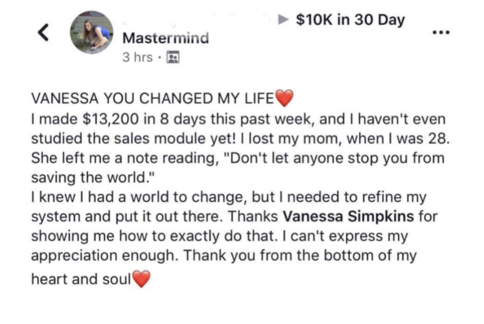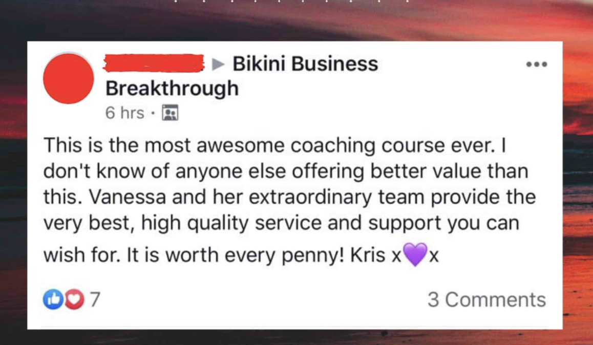 “Vanessa, gosh, where do I begin… who you see online is who she is in person—she’s very authentic she’s very real—she’s truly passionate about helping women become the best version of themselves and become the best kind of coach that they can be with her systems. I was able to see that immediately by just being in the room with her, she really is no B.S”